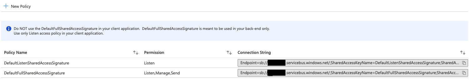 In there you'll see the DefaultListenSharedAccessSignature, along with its connection string: