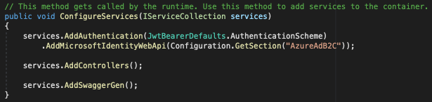 .AddMicrosoftIdentityWebApi(Configuration.GetSection("AzureAdB2C"));